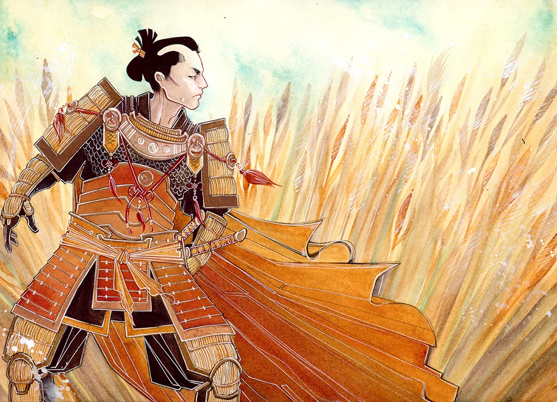vanguard \\ 10x14 \\ watercolor, gouache, ink, gold leaf