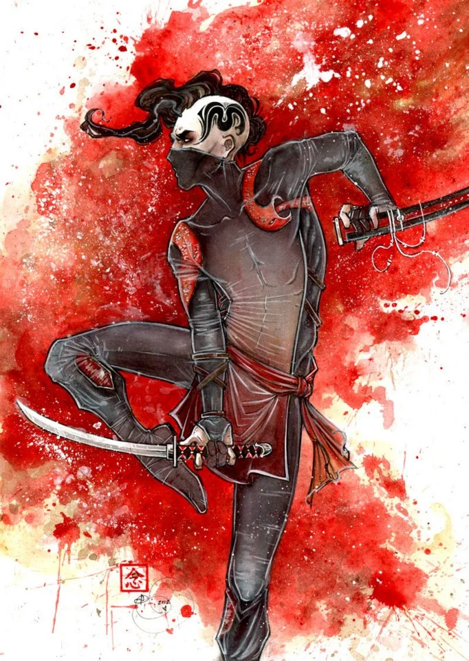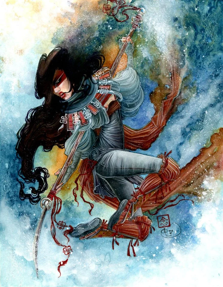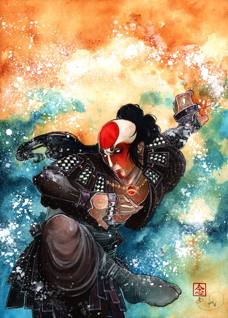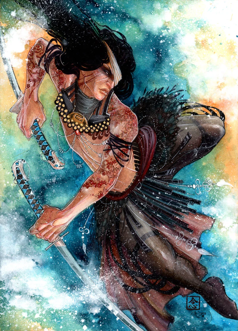 This is relevant pieces from Shinobi Clans, my first published card game that I illustrated in full. From this project, I was hired to work on Legend of the Five Rings. My comic work came after that. I did 50 paintings in a span of roughly 3 months, with a one month burnout in the middle. So about 4 months in total. These are roughly in the order in which I did them.