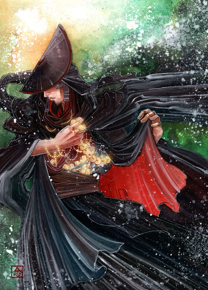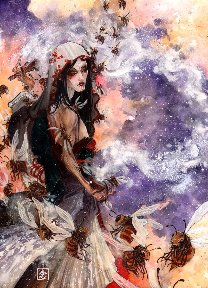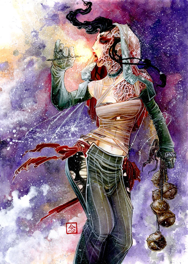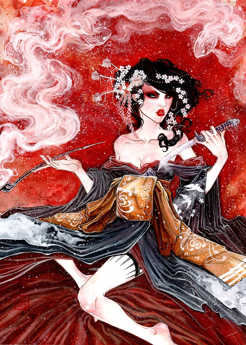 This is relevant pieces from Shinobi Clans, my first published card game that I illustrated in full. From this project, I was hired to work on Legend of the Five Rings. My comic work came after that. I did 50 paintings in a span of roughly 3 months, with a one month burnout in the middle. So about 4 months in total. These are roughly in the order in which I did them.